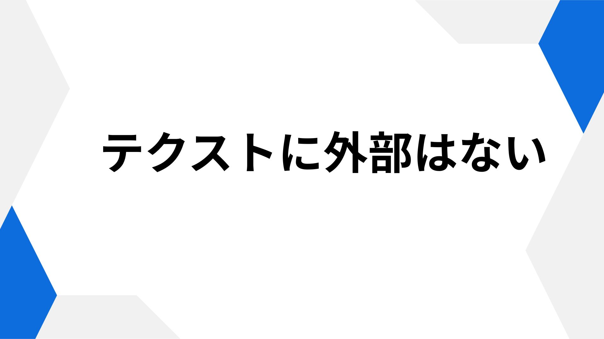 デリダの有名な命題「テクストに外部はない」は、しばしばテクスト論的反意図主義のスローガンとして誤読されてきましたがそうではありません。